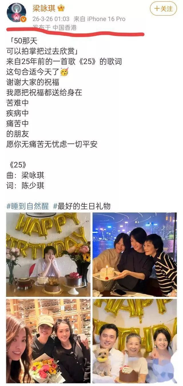 3月26日凌晨1点,梁咏琪在社交平台上分享了她50岁生日的庆生照片,素颜出镜的她依然光彩照人,仿佛岁月在她身上格外温柔。