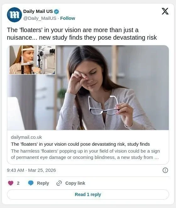 医学界提醒,尽管飞蚊症常见且多数无害,但突发变化不容忽视,及早检查是避免严重后果的关键。