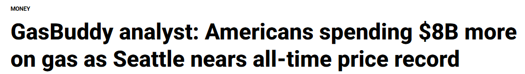 “在俄克拉荷马州的一些地区,你还能找到低于3美元的廉价油,”De Haan在接受KIRO电台采访时对比道,“但只要你往西海岸走,无论是西雅图还是加州,你看到的都是6美元、7美元。”他特别提到,南加州的一家雪佛龙加油站甚至打出了每加仑8.21美元的惊人价格。