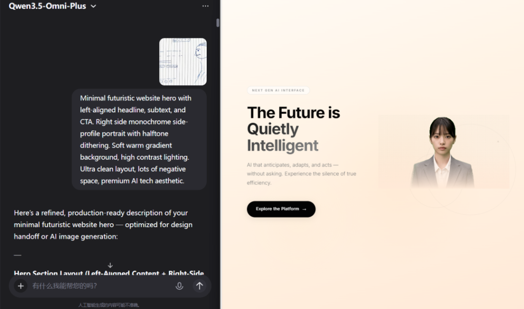 Qwen3.5-Omni成功证明了:它能把复杂的、混乱的、连续的输入,变成可以直接拿去用的结果。