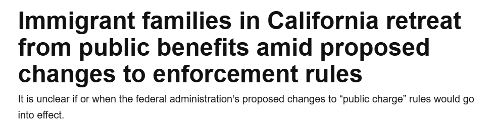 近日,随着联邦政府寻求修改有关“公共负担”(Public Charge)的规定,加州的移民家庭对接受公共福利的顾虑日益严重。由于移民执法频繁,许多家庭担心使用福利可能影响绿卡及签证申请,从而放弃儿童保育和早期教育服务。