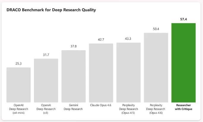 根据业界衡量深度研究质量的DRACO基准测试显示,两个模型之间的合作的确要比“单打独斗”强出一个档次。