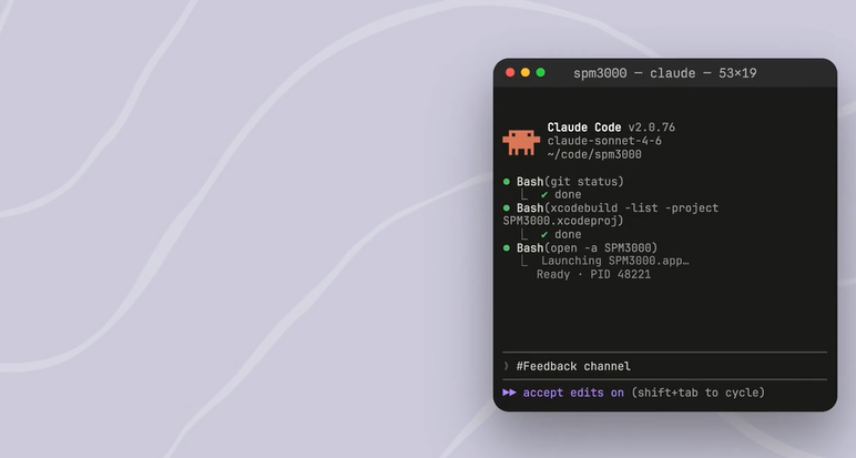 原生应用构建验证:写完Swift代码直接让Claude编译启动,自动点击每个控件验证功能,不用碰一下鼠标