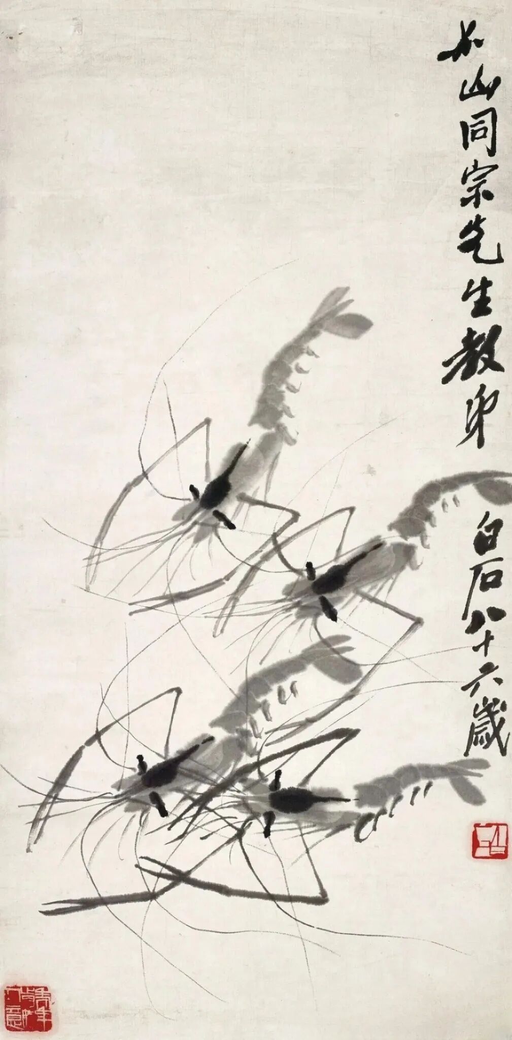 虾是练出来的手艺:他画虾大半辈子,千锤百炼到几笔淡墨就活灵活现,是技巧的巅峰。