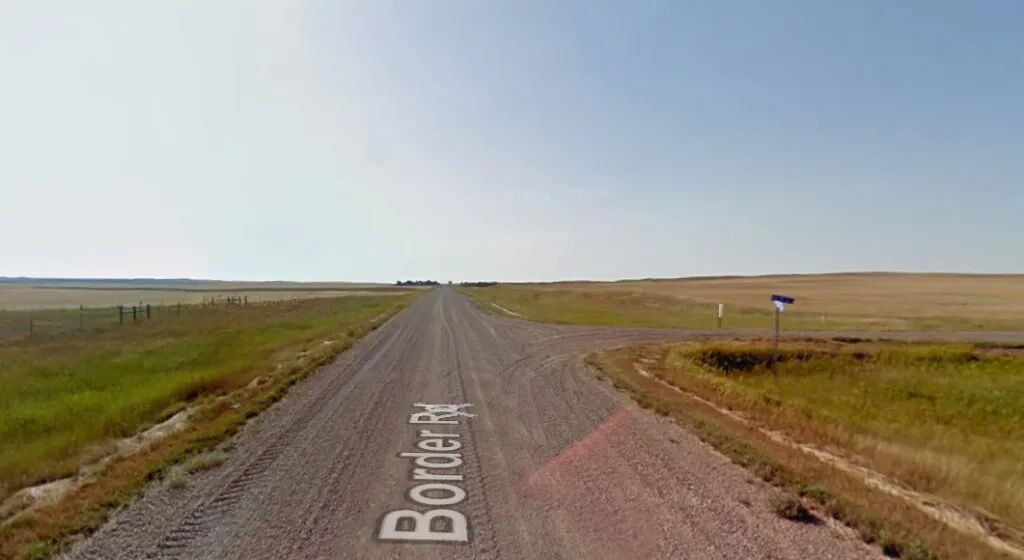 在甜草山(Sweet Grass Hills)呼啸的狂风中,横亘着边境公路(Border Road),这是一条 14 公里长的平整碎石路,连接着美国和加拿大。