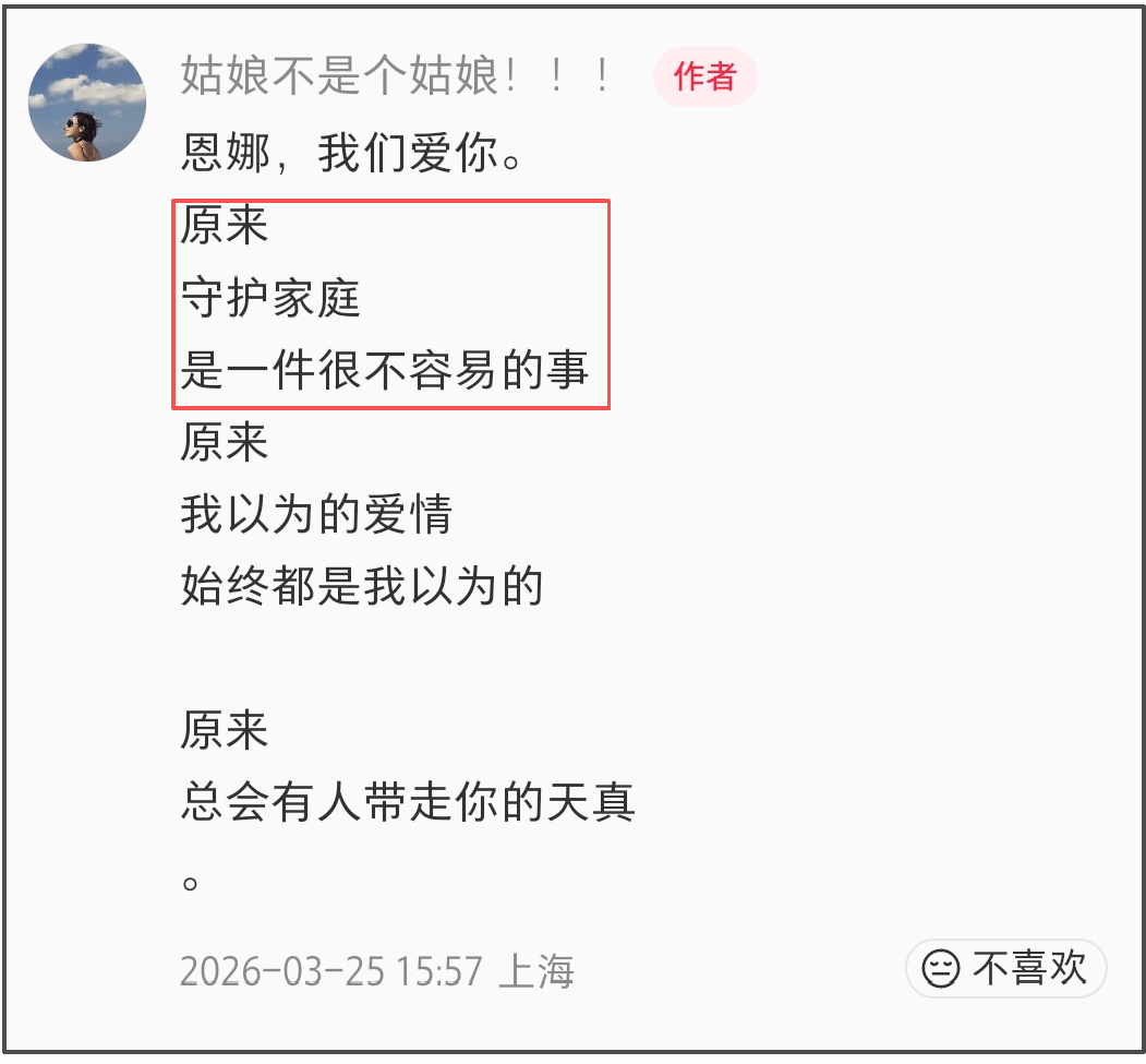 那宋宁峰到底什么时候出轨的呢?扒一扒宋宁峰的社媒就清楚了,翻遍所有的内容,发现宋宁峰主要发的是工作和孩子的生活,张婉婷的存在感很低,上一次出现还是2024年10月,而这也是他最后一次发“我爱你们”系列。“我爱你们”和“可爱的角落”是宋宁峰记录张婉婷和孩子的特有系列,标签统一打了“我的家人”,足见他的重视。