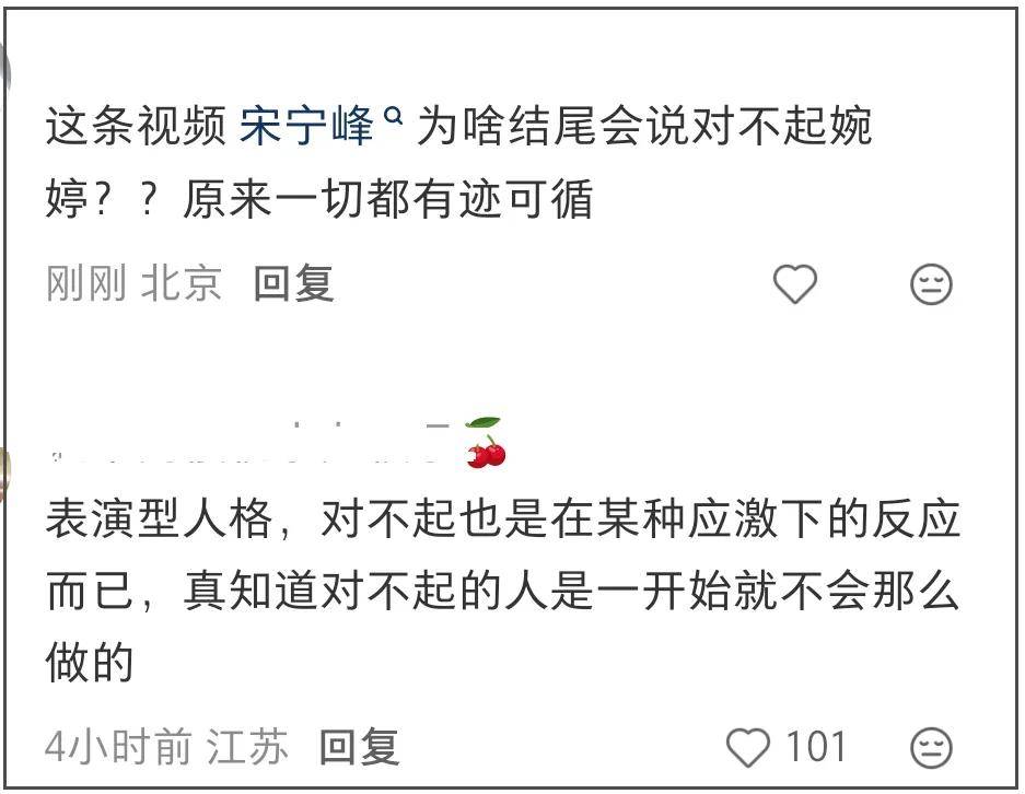结合画面内容细品发现原来隐藏深意,主画面女儿在舞台上表演钢琴,结尾则晒了宋宁峰流着泪水说着“对不起”的画面。综合出轨爆料,不少网友表示一切有迹可循,不然不会对着张婉婷说对不起,但也有人觉得是表演欲上身而已,并不是诚恳的道歉。