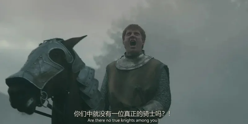 说这句话的人叫邓肯——巨人的身材,儿童的心智,他不是装傻,他是真的傻。傻到不知人情世故,傻到一紧张就拉稀,傻到在乱世之中还把誓言当真,但就是这股傻劲让他赢到了最后。邓肯穷到下雨天也只能在树下打地铺,参加比武大会时还幻想着一夜暴富。全剧就是看着一个穷憨憨独闹比武大会,让一众王公贵族丑相毕现的荒唐戏。不怕一个人傻,是怕他不够傻,傻到极致反而成为独特的存在。