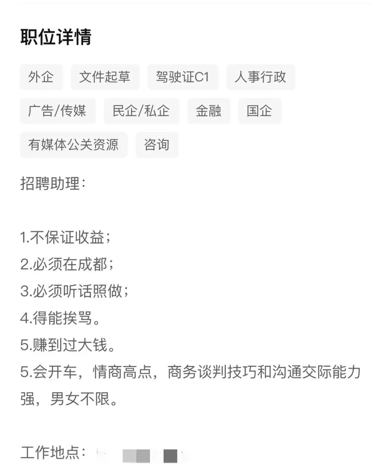 某些公司的招聘要求到了让人大跌眼镜的地步。