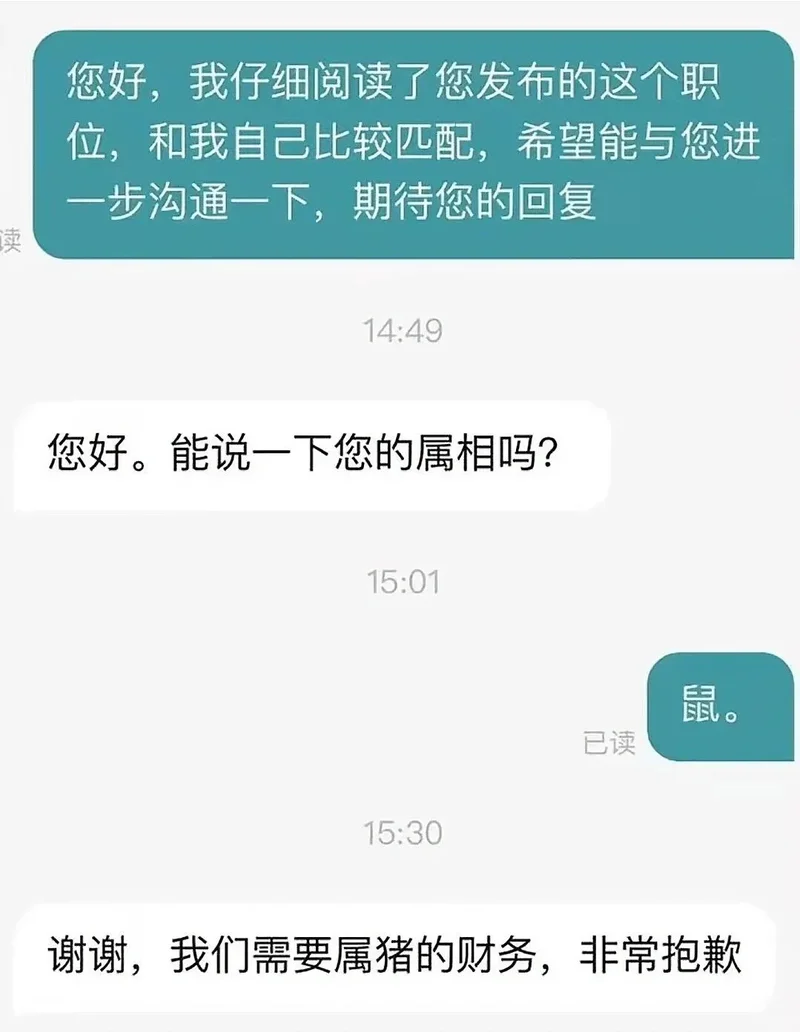 笃信属相生克原理的老板,则对财务这一重要岗位员工的属相做出了要求。