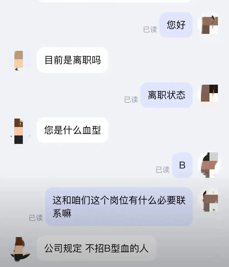 根据一些老板定下的规矩,如果你是B型血的人,无论多么优秀,都无法走进公司的大门。