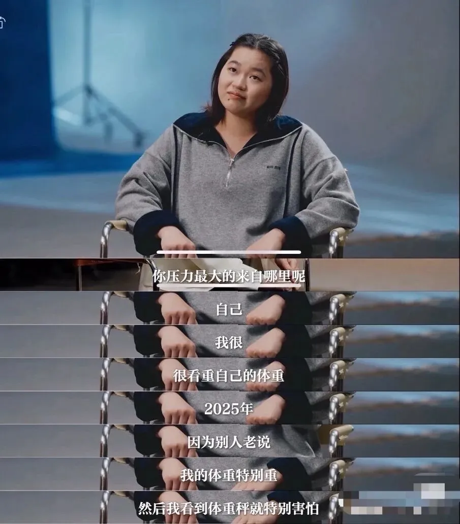 当时,全红婵第一次来例假,吃一点体重就会长,那时候每天都能看到有人说她胖,“但我已经要饿爆了,减肥减到我感觉我都快‘嘎’了。”她特别伤心,到后来,已经有心理阴影,看到体重秤就特别害怕,直言“每天就吃那一顿饿得不行,接受不了这么胖的自己”。这种压力甚至影响训练状态,站上跳台时“曾经不害怕的动作都很害怕”。