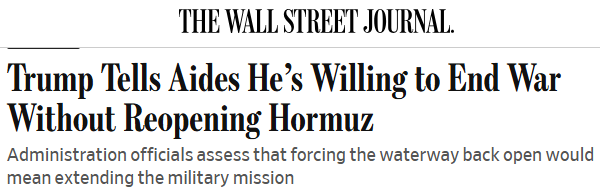 据政府官员称,总统川普已告知助手,即便霍尔木兹海峡仍然基本上处于关闭状态,他也愿意结束美国对伊朗的军事行动。这一决定可能会延长德黑兰对该水道的控制,而重新开放海峡这一艰难的目标也可能会无限期推迟。
