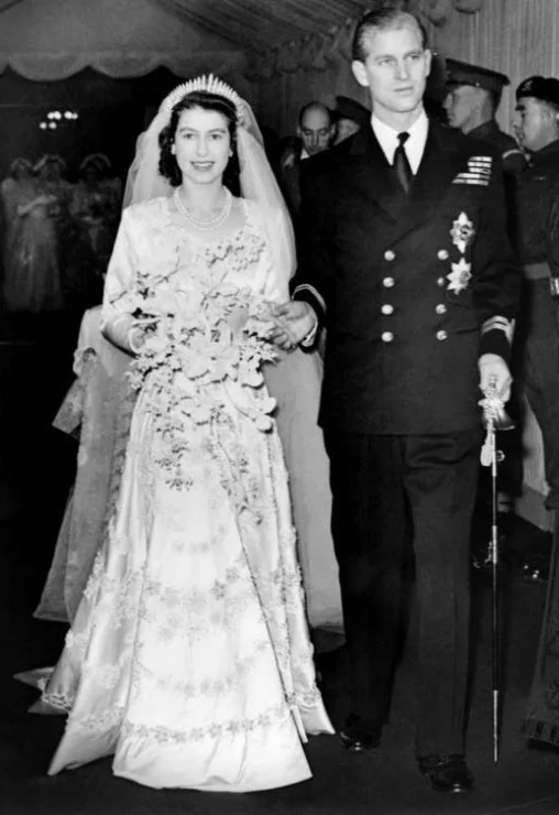1947年11月20日,威斯敏斯特教堂。26岁的菲利普·蒙巴顿与21岁的伊丽莎白公主结婚。