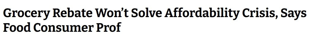 她认为,更全面的应对方式应结合收入补贴与食品体系相关的政策改革,才能更有效改善长期的负担能力问题。像补贴这样的收入支持对短期缓解至关重要,但还应配合结构性措施,包括加强食品零售行业的竞争、提升价格透明度,以及加大对加拿大本土食品生产的投资,以减少对全球市场波动的依赖。