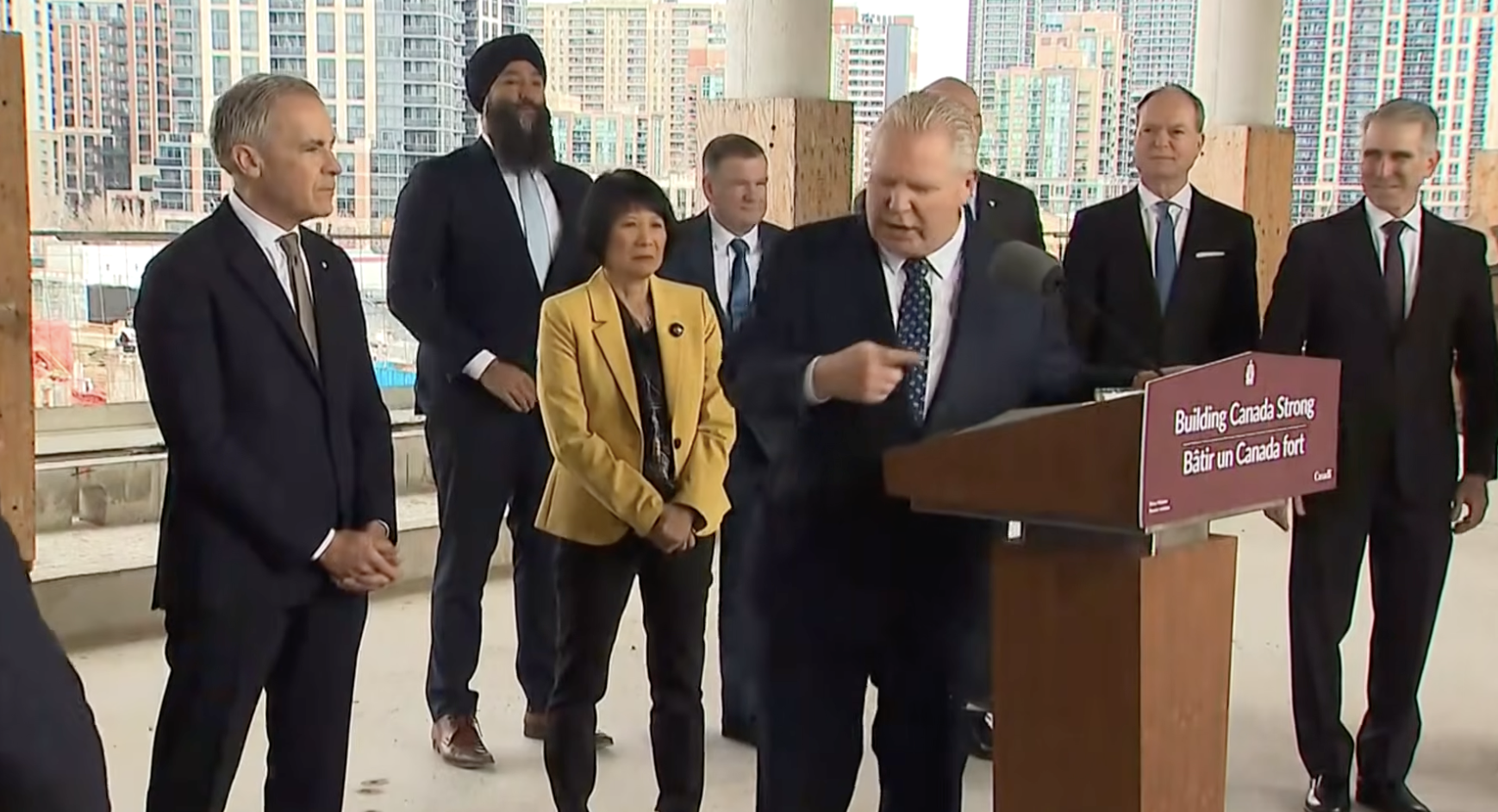 昨天,加拿大总理Mark Carney、安大略省省长Doug Ford及多伦多市长 Olivia Chow 在Etobicoke共同出席一个关于加快住房建设和交通基础设施投资的三方联合新闻发布会。 在发布会发言间隙,Ford在台上错误伸手拿起一个放在讲台上的水杯,随后意识到那是Carney的水。他询问卡尼是否已经喝过这杯水,卡尼表示并未喝过。福特随即打趣说:“这不会把我变成自由党吧?”这一轻松玩笑...
