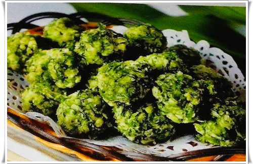 做法:艾草粉加适量面粉,用水、盐揉成面团,做成大小适中的艾草菜团,入锅中蒸熟即可。