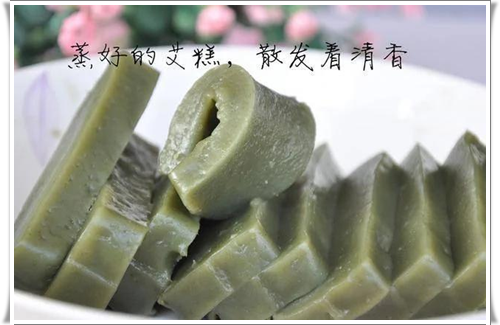 做法:取艾叶(或艾草粉)、糯米、白糖各适量。将糯米蒸熟,和着艾草粉或者艾草(先将艾草洗净,加少量食用硷开水熟一下,去苦味,再用清水漂洗)一起捣糊,揉制即可。
