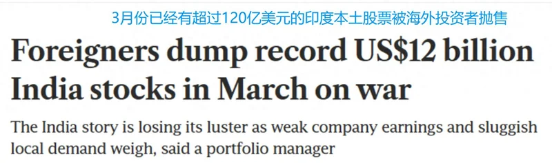 截至目前,3月份已经有超过120亿美元的印度本土股票被海外投资者抛售,整个3月也将成为印度股市有记录以来,单月资金外流最剧烈的一个月。