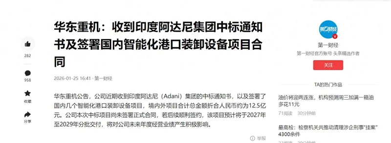 值得一提的是,前段时间,华东重机接下12.5亿印度大单,没签合同就开工,工厂那边就已经开始全速运转起来,采购、产线方面全力推进。华东重机这一系列的操作,让业内捏了一把汗,要知道,过去众多中企在与印度的一系列出口与本土合作过程中,签了合同的都可能被印度赖账,付了首付甚至直接赖掉尾款,而华东重机居然不签合同就开工,这很可能成为一次高风险的赌注,为未来的一系列合作隐患埋下了雷。