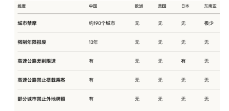 上面是我让Claude整理的一个表格。这里我不想驳斥限禁摩政策的不合理之处(我之前专门写过,所有理由都禁不起推敲),看这个表格就知道了,中国/中国人没有特殊到了这个程度,那种说“中国人多””中国人不守规矩“的可以滚出去了。