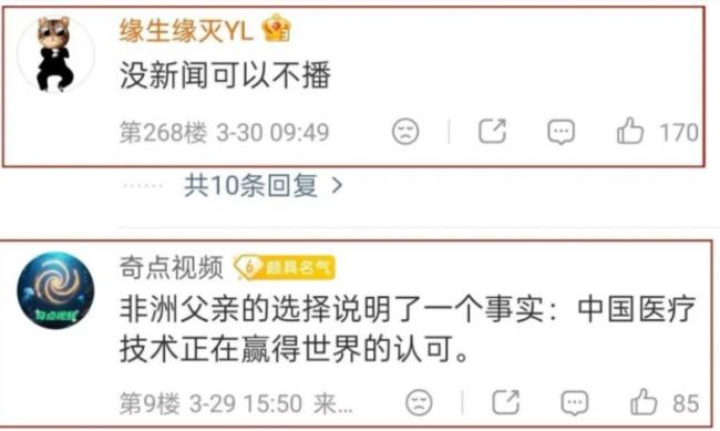 可见,这篇新闻报道的重点,压根就不是医术,而是多少钱。像网友@奇点视频的“中国医疗技术正在赢得世界的认可”,完全是不自信的表现。“遥遥领先”都时常挂到嘴边了,还需要什么认可。
