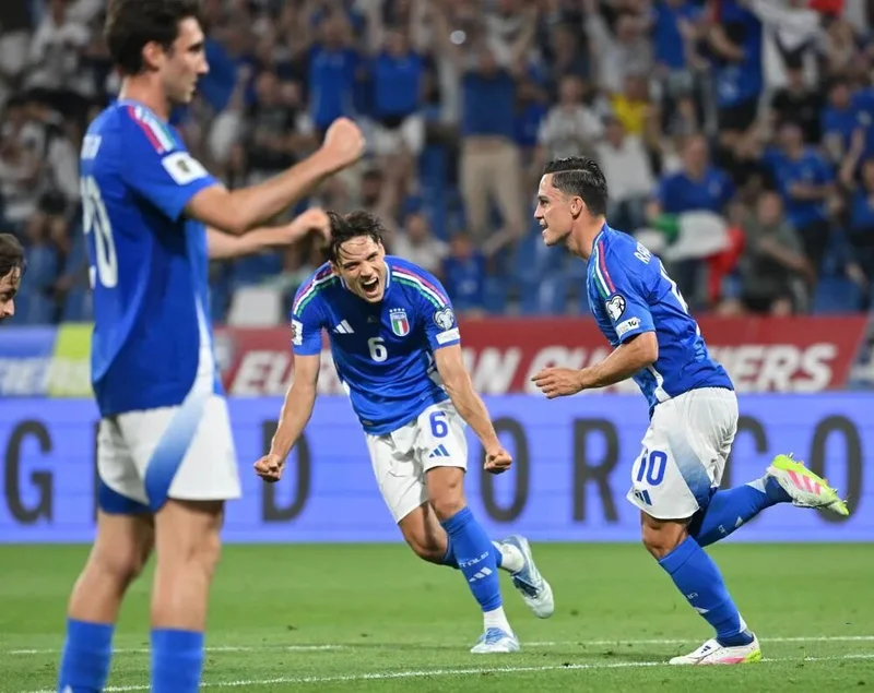 世界杯大冷门:四冠王意大利出局,波黑历史性晋级。照片摄于2026年6月9日,当日意大利队主场2比0战胜摩尔多瓦队,意大利队球员拉斯帕多里(右)庆祝进球。新华社