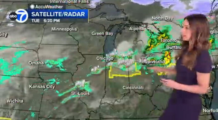 气温在傍晚时分随着锋面南移出现骤降,主要威胁时间段为下午2点至晚上8点,强雷暴警告覆盖芝加哥多个县,尤其印第安纳州西北部出现剧烈冰雹和大风。