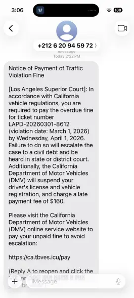 近日,加州总检察长Rob Bonta警告称,一种以假冒官方法院名义的诈骗短信和邮件在加州迅速蔓延,主要针对司机,要求他们立即支付所谓的交通违规或通行费罚款。