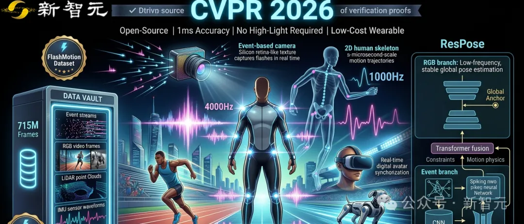 全球首个1毫秒级人体动作捕捉系统FlashCap,通过闪烁LED与事件相机结合,实现1000Hz超高帧率捕捉。无需昂贵设备或强光环境,低成本穿戴服即可精准捕捉极速动作。团队同步开源715万帧的FlashMotion数据集与多模态模型ResPose,显著提升运动分析精度,推动体育、VR与机器人领域迈向高动态智能新阶段。