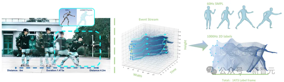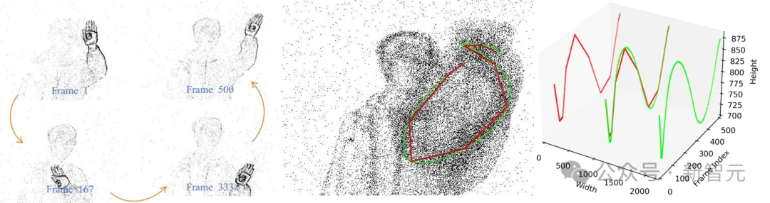 通过配套的自动化标注流水线(密度聚类、频率识别、噪声过滤),FlashCap能够直接从杂乱的事件流中精准解析出原生的1000Hz人体2D姿态标签 。 无需十万美元的设备,无需强环境光照,更没有巨大的数据存储压力,高精度、低成本的1000Hz的真值数据就此制作完毕。