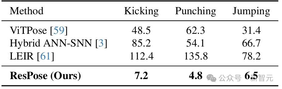 传统的 RGB 方法(如 ViTPose) 面对高速动态直接捕捉缺失,时间误差高达 50 毫秒以上 。