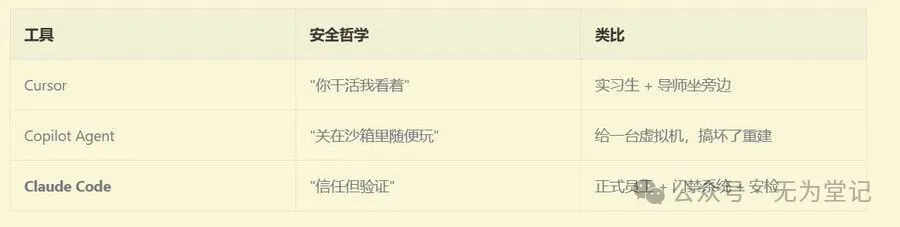 如果你是 Cursor 的做法:你让他坐在你旁边,每次他要敲命令之前你看一眼,点个"允许"。简单粗暴,但你得一直盯着。