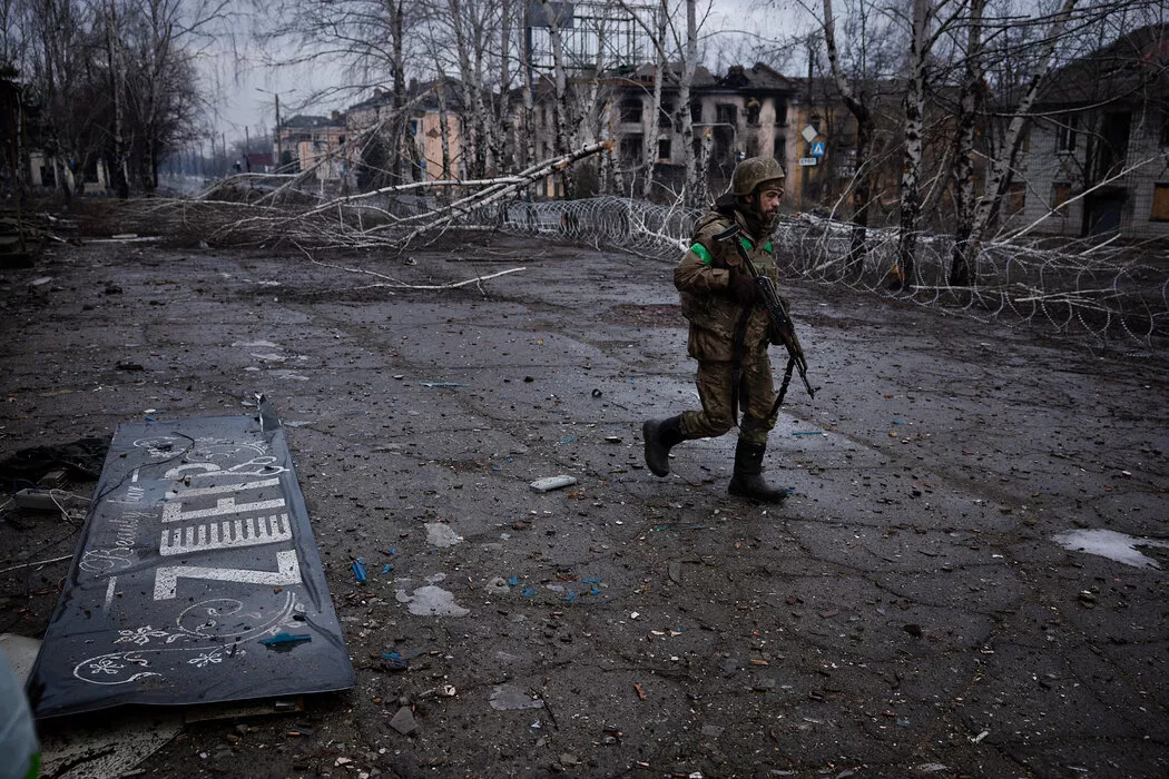 1月,遭围困的乌克兰康斯坦丁尼夫卡市,一名乌克兰步兵。俄罗斯以战争为借口在国内打压互联网自由。