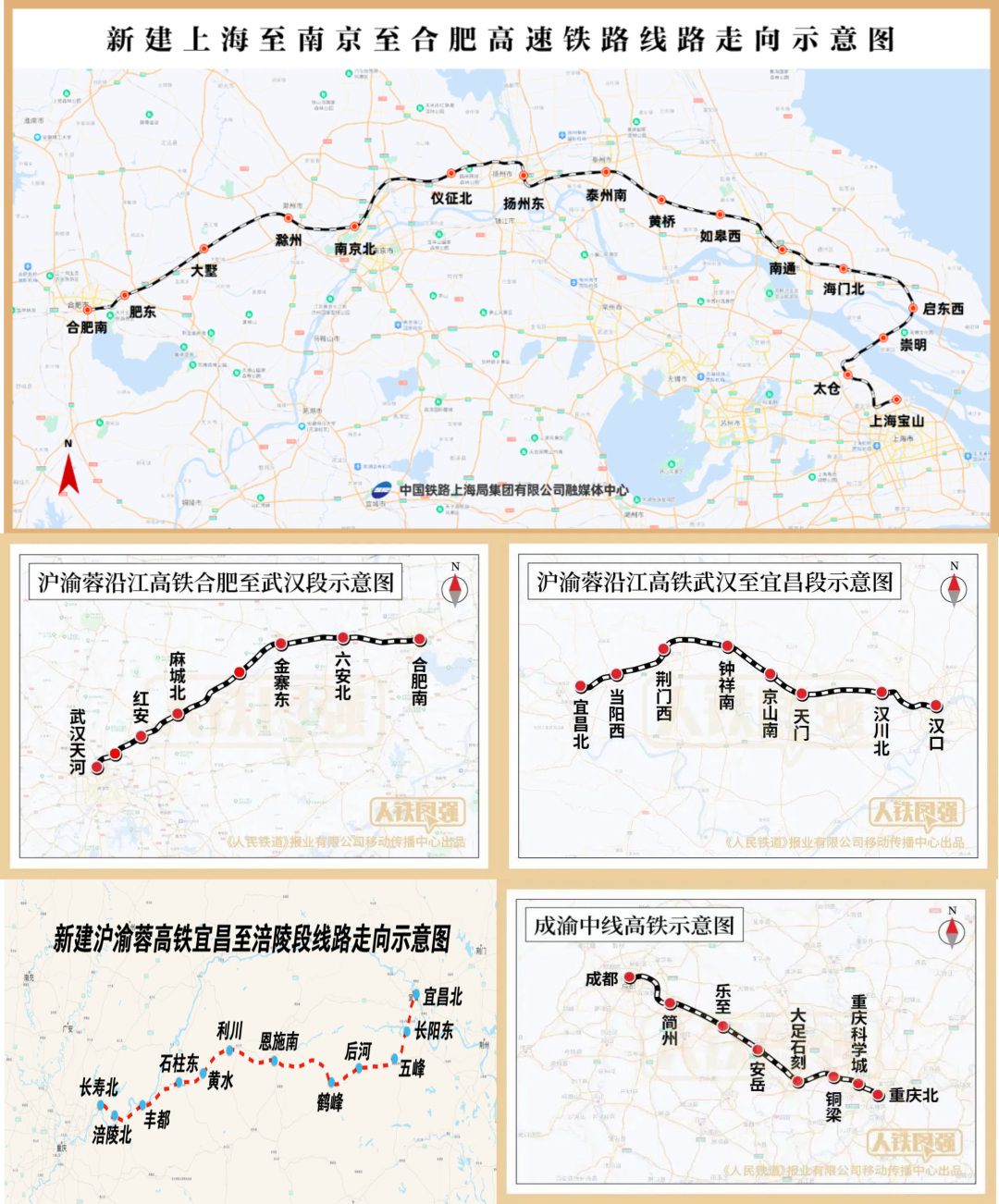 届时从上海到重庆、成都只需5.5小时、7小时,而此前分别是9小时、10.5小时。