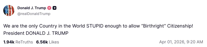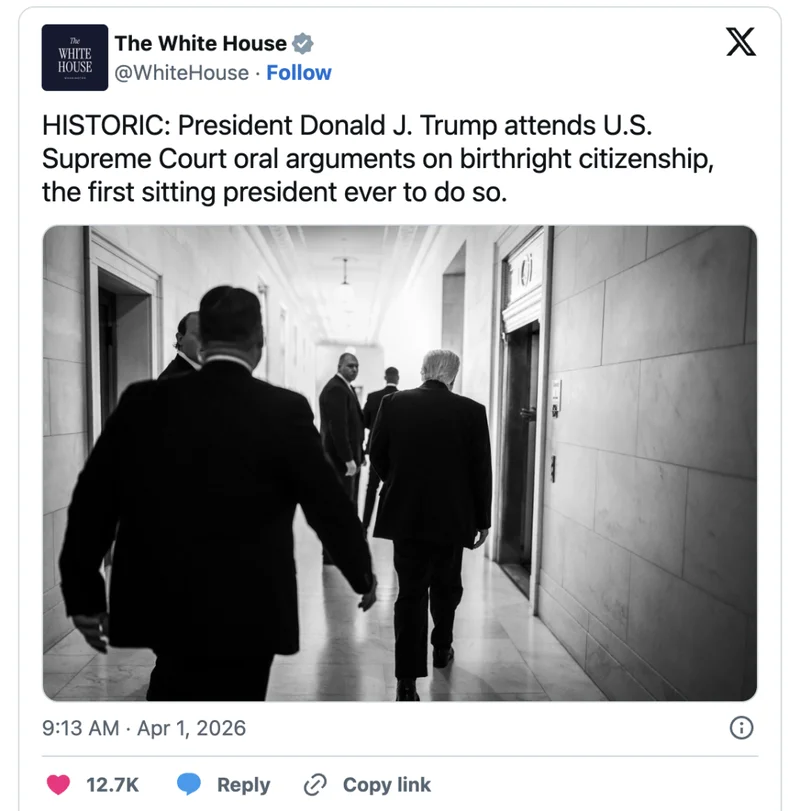 2026年4月1日(周三),美国最高法院正式开始关于“出生公民权”的口头辩论。