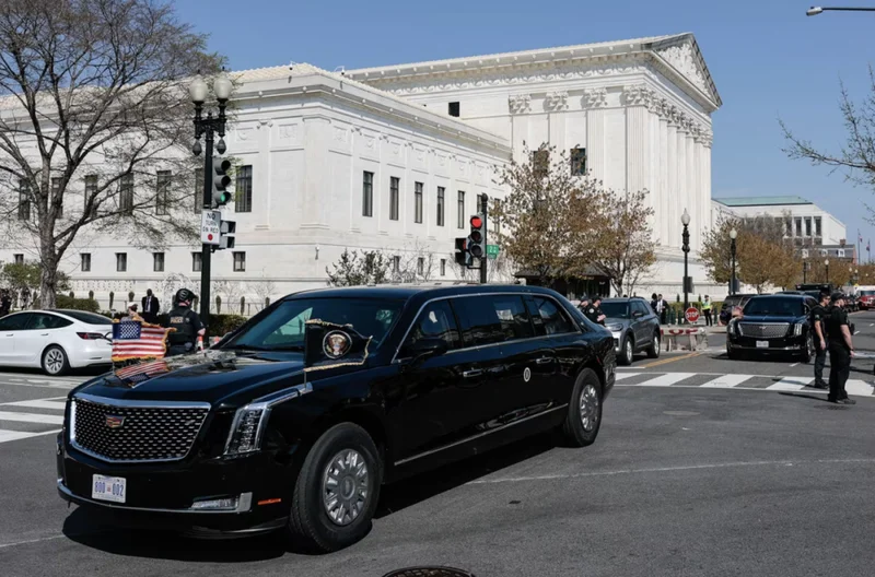 特朗普出席了大约 90 分钟的辩论后,离开最高法院。
