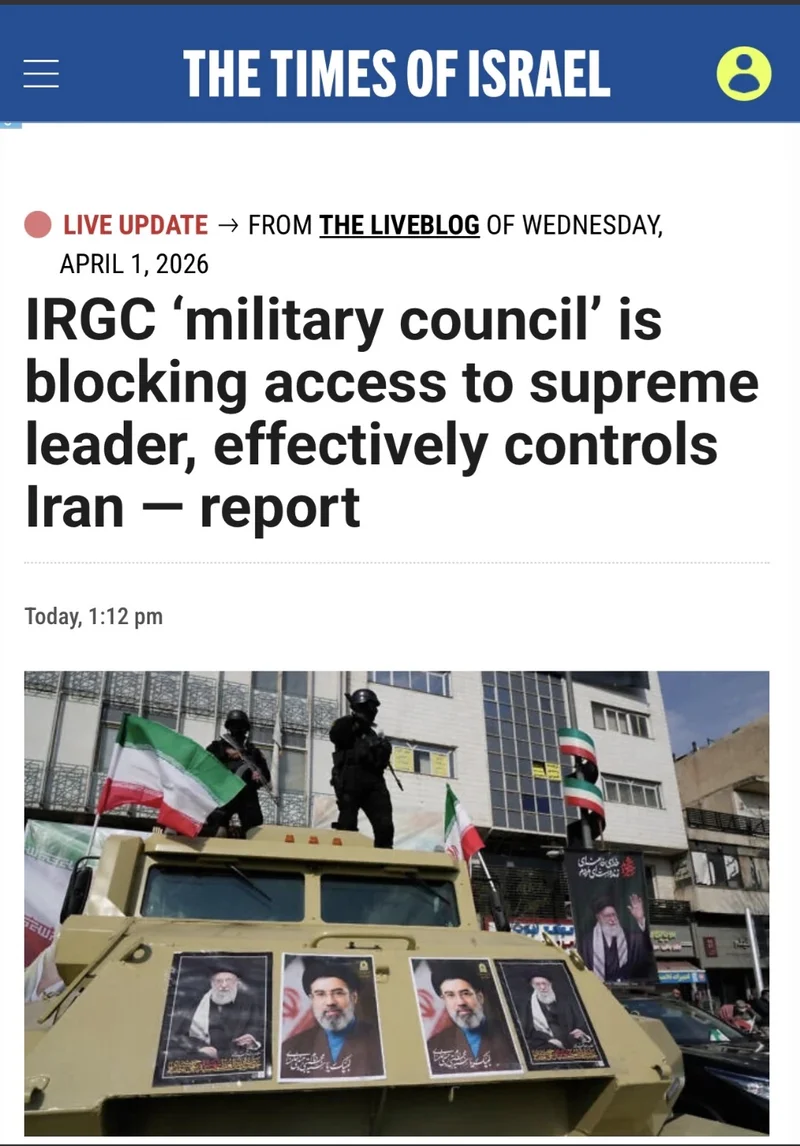 以色列《以色列时报》官网4月1日报道:据报道,一个由伊朗伊斯兰革命卫队高级军官组成的“军事委员会”已实际掌控该国,否决了总统佩泽什奇安的任命,同时切断了其与最高领袖穆杰塔巴·哈梅内伊的联系。