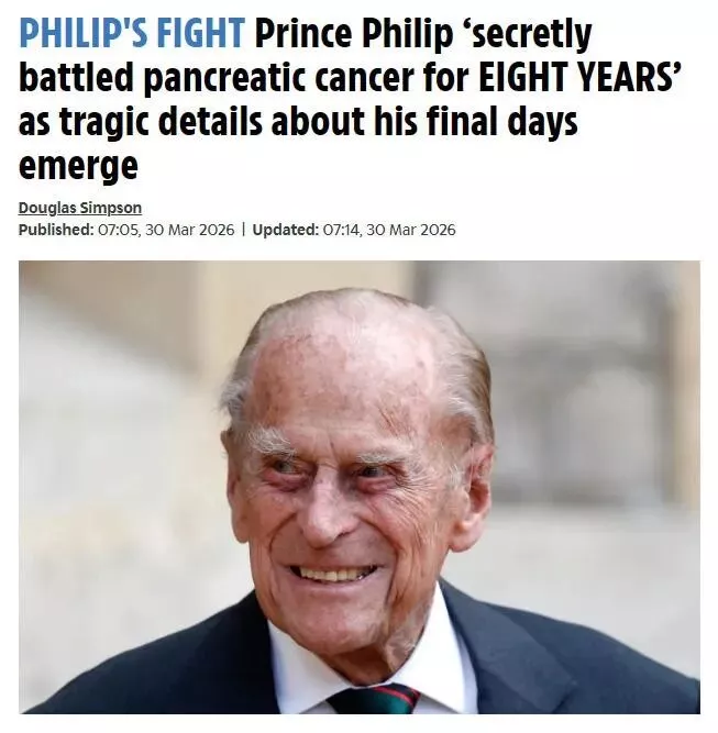 但五年后,2026年3月,皇家历史学家Hugo Vickers在他书中披露了真相:菲利普亲王在生命的最后八年里,一直带着无法手术的胰腺癌活着,只是王室从来没有公布过。