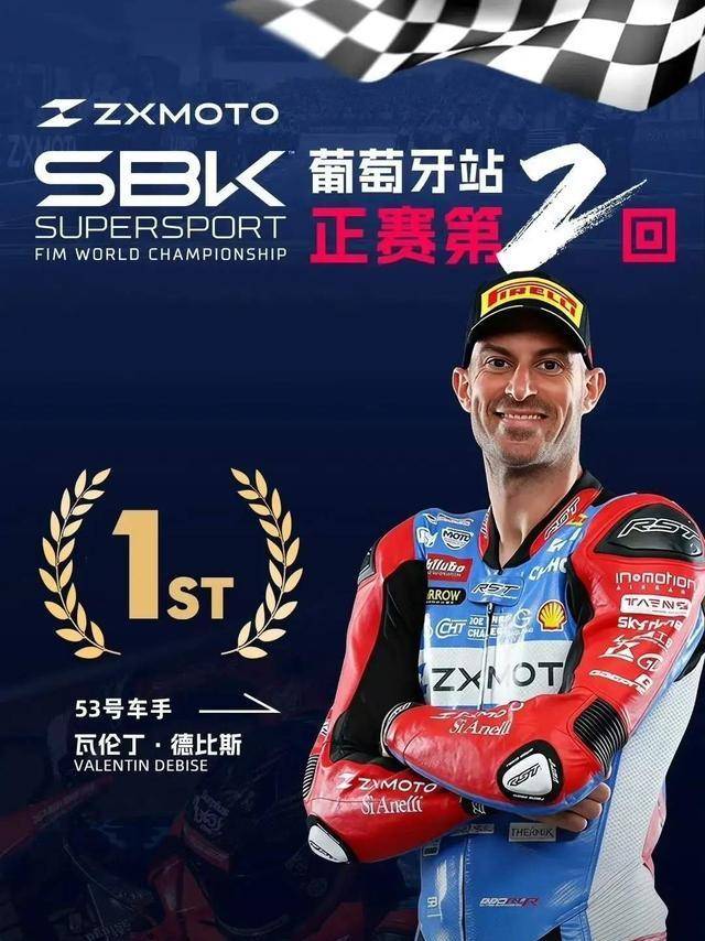 拿冠军的哥们叫瓦伦丁・德比斯。33岁了,老将一个。之前骑雅马哈R6.在WSBK顶级组别混了97场,只拿过一个冠军。说难听点,在神仙打架的欧洲围场里,他就是个随时可能被后浪拍死在沙滩上的边缘人。但偏偏,3月28日这天,他骑着一台贴着中国厂标的车,在葡萄牙把一众欧洲豪门按在地上摩擦。
