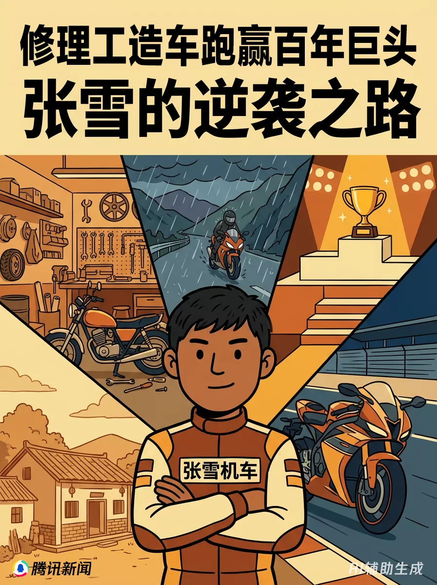 2004年,17岁的张雪初中毕业,在怀化市找了家车行当学徒,学习修摩托车。