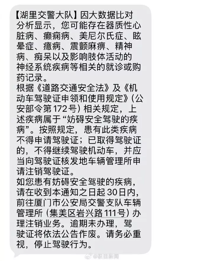 再说,湖里交管给那位网友发的短信,明确说要注销驾照,现在又改口说“要进一步核实”,拜托,执法部门给民众发送执法信息,应该准确而完整,不要上来这么一惊一乍好吗,不然收信人即便没有神经衰弱,恐怕都要给吓出来了!