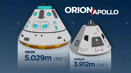 猎户座飞船与阿波罗飞船在外形上相似,但前者在尺寸、技术和任务目标上实现了全面升级。猎户座飞船的乘员舱比阿波罗指令舱大近一倍,可搭载4至6名宇航员,而阿波罗最多只能容纳3人。