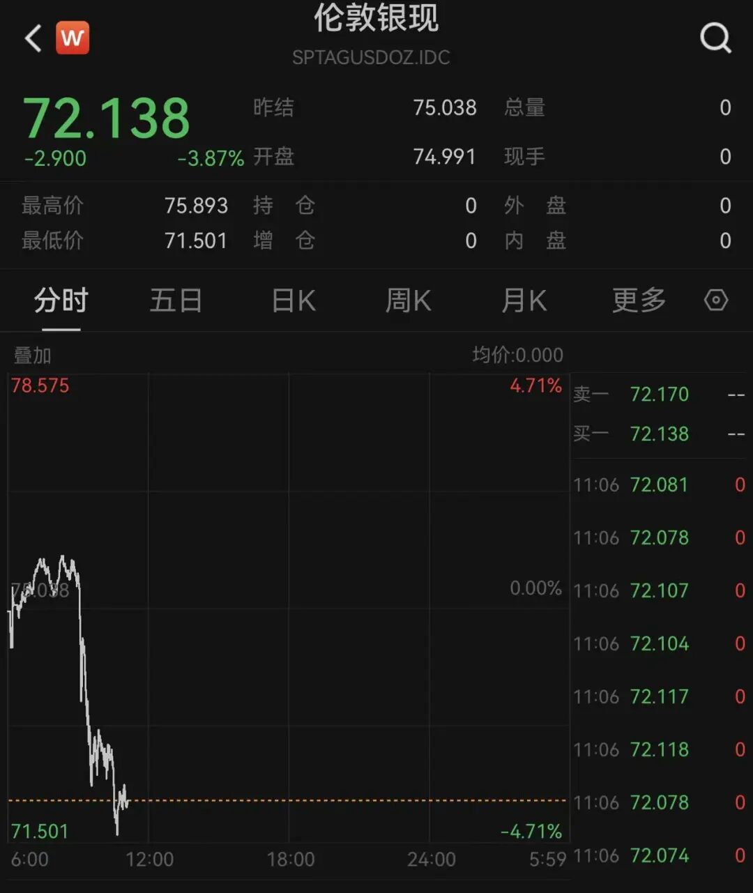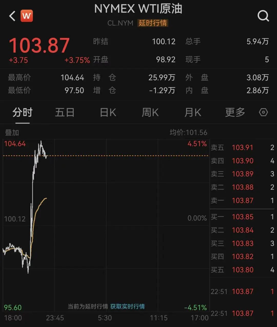 受上述言论影响,全球市场剧烈变动,国际油价突然飙升,布油一度从下跌转为涨超5%,WTI原油涨超4%,截至发稿,布油涨4.7%,WTI原油涨3.75%;金银跳水,伦敦金现一度跌超2%,伦敦银现一度跌超4%。