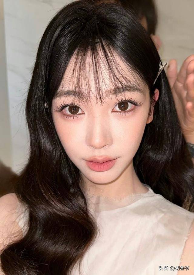 她这次走的是韩系温柔风,长卷发搭配空气刘海,看着挺温柔,但一放到马吉拉这种顶奢秀场,瞬间就被比下去了。