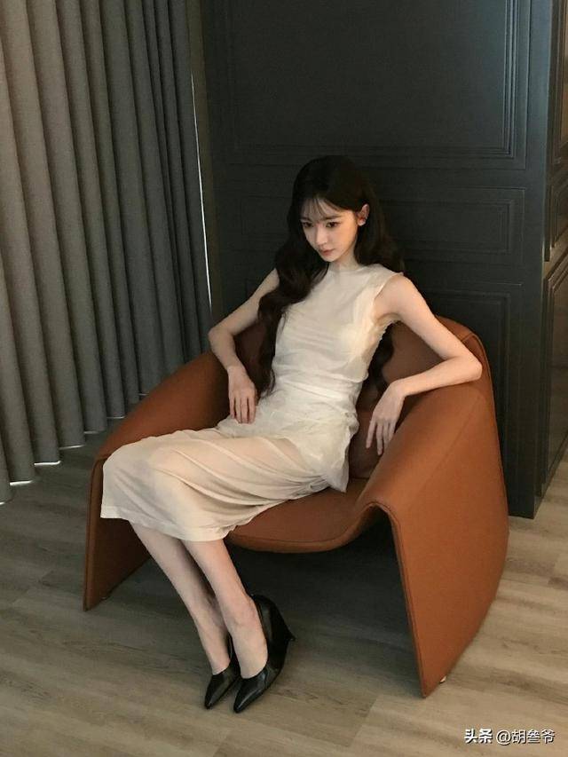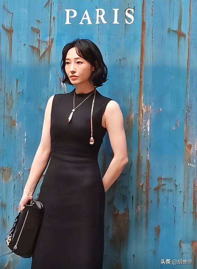 她穿了一件纯黑色无袖连衣裙,收腰设计把身材曲线勾勒得很曼妙,搭配平底鞋,看着随性又大气。