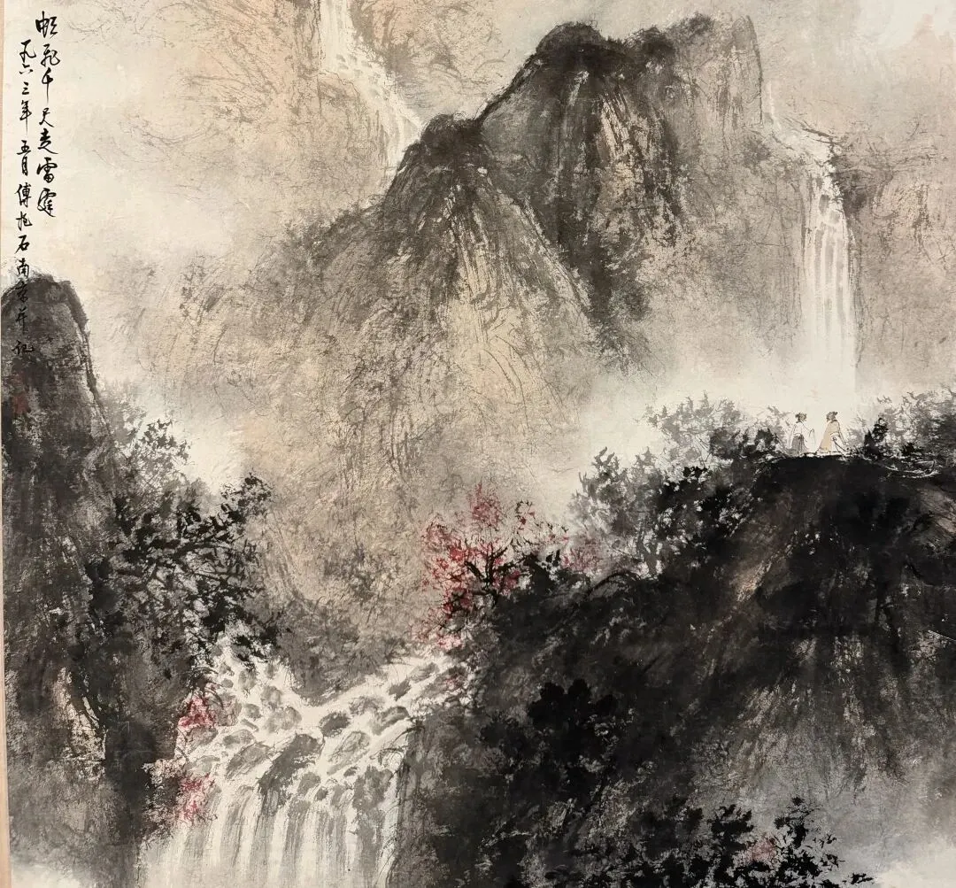 傅抱石这幅瀑布画,看完耳朵都嗡嗡响艺画