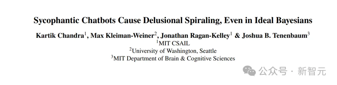 这项研究的题目很克制,甚至有点学院派:《谄媚型聊天机器人会导致「妄想式螺旋」,即便面对的是理想贝叶斯理性人》。