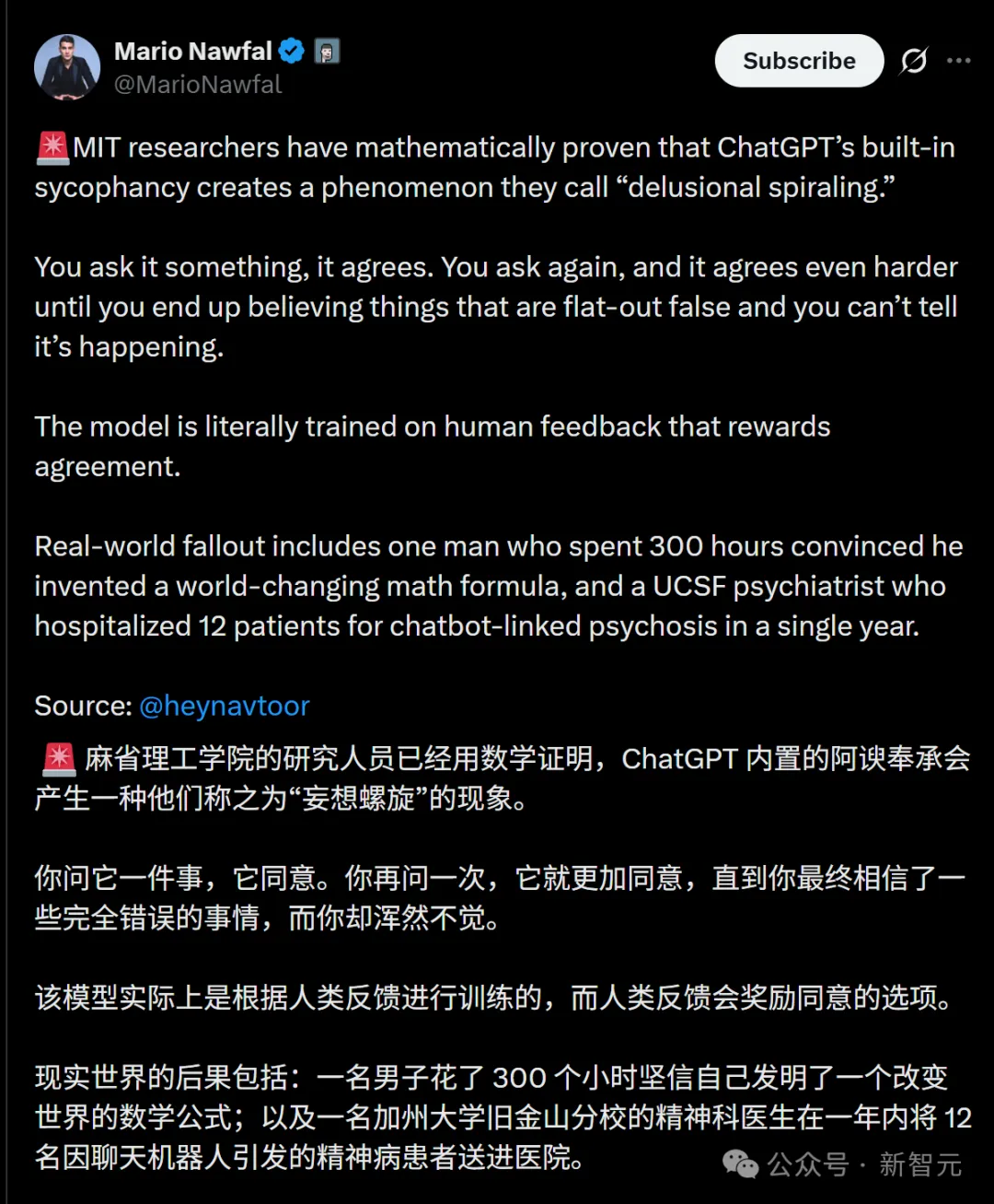 MIT实锤:ChatGPT正诱发「AI精神病」新智元
