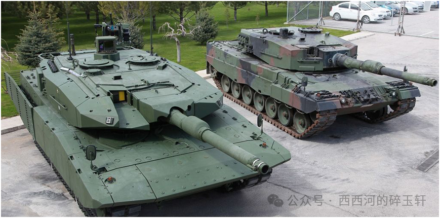 右为土耳其 2005 年从德国进口的二手 “豹” 2A4 主战坦克,左为由 “豹” 2A4 升级而来的 “豹” 2NG 主战坦克。